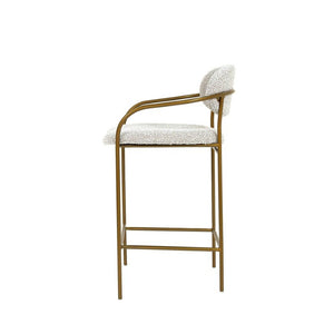 Bring a sophisticated touch to any space with this counter stool. The gently curved back and sloped arms provide both style and support, creating a comfortable seating experience. A sleek bronze metal frame offers sturdy support while enhancing its modern appeal. Ideal for kitchen islands, breakfast bars, or home lounges, this stool complements both contemporary and classic interiors.
