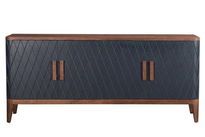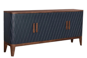 Constructed from natural mango wood, this dark blue painted hutch features a distinctive diamond motif and wooden accents treated to retain their inherent colouring, and best reveal the tree's own patterns. It's fitted with wide doors on smooth hinges that open to reveal two shelves for plenty of storage opportunities. A timeless addition to your living room, office, or den.