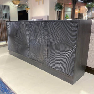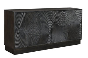 Unique and intricate concentric circles pattern the front of this distinctive Spiral Sideboard. Crafted from mango wood, this whimsical hutch features plenty of storage space and a mesmerising aesthetic. It offers push-to-open doors and combines rustic and straightforward living with a modern flair.