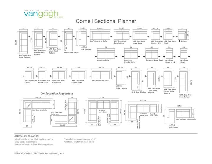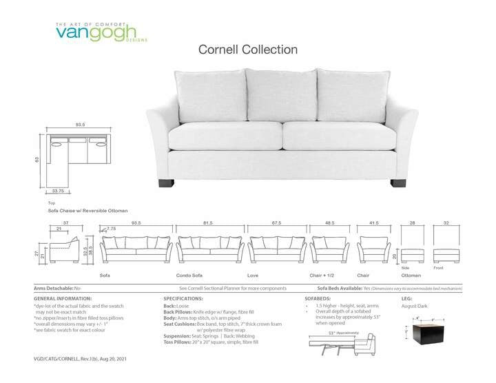 Available as a sofa, condo sofa, loveseat, chair and chair & 1/2, the Cornell collection pieces are made in Canada using only top quality materials, Van Gogh Designs' upholstered furniture is built to last. With nearly 500 individual fabrics, hundreds of styles and a nearly limitless array of custom options, it is easy to create a bespoke, made-to-order showpiece without breaking the bank.