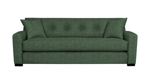 This tight back sofa, with a button detail, is a classic in any home. It contours and supports your guests with its design features. The curved shape of the arms softens the look of the sofa to create a balance of both femininity and masculinity within the piece. As a result, it translates well into a variety of spaces and complements almost any decor.
