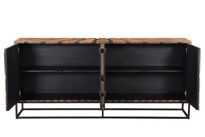 Crafted from naturally sourced mango wood on an iron frame, this four door buffet table combines sturdy construction and modern design. Specially treated to retain the wood's natural tones and patterns, the four doors open to reveal ample storage within making it a functional and timeless addition to your space.