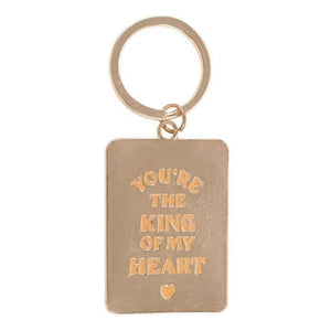 Carry a little royalty with you wherever you go with this gold-tone keyring, featuring an enamel king playing card design. The reverse side reads 'You're the king of my heart', making it a heartfelt gift for someone special.