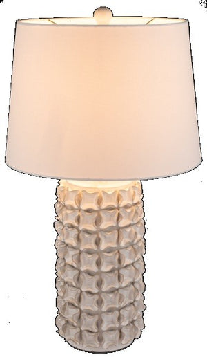 Chic ivory table lamp with a petal-inspired design. Offers soft, ambient lighting and supports bulbs up to 60W for a cozy, inviting glow.