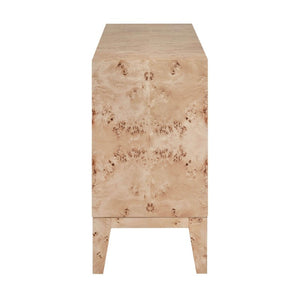 - The standout feature of this Sideboard is its eye-catching mappa burl veneer, which is derived from the burl wood of the Mappa tree. This distinctive wood grain pattern showcases a mesmerizing combination of swirling lines and intricate details