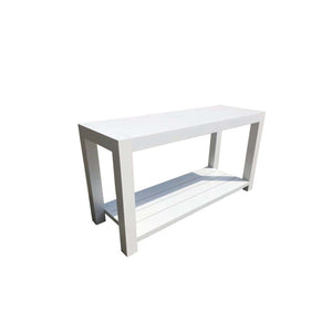 Clean, modern and unique, the Millcroft Outdoor Console Table is a great option for backyards and cottages. Made of durable aluminum, the Millcroft Outdoor Console Table features a unique hand applied finish that gives it a high end look that is maintenance free. No umbrella hole.
