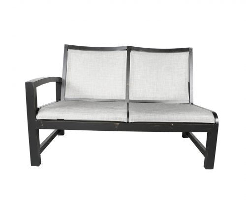 Constructed from a durable powder coated cast aluminum, the Millcroft Outdoor Left Module features a long lasting Sunbrella Sling® fabric interior, that is both stylish and comfortable. The Sunbrella Sling® fabric is a PVC coated polyester that is resistant to tears, sun damage, mold and mildew.