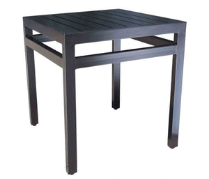 Expand your dining and entertaining space with the Monaco Outdoor Square Side Table 21". Clean, relaxed and modern, this table features a wide slatted table top. Constructed from a long lasting aluminum, it's available in a Black or Dove.