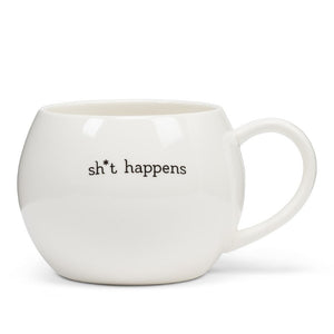 Enjoy a cheeky cuppa in this Shit Happens/Coffee Helps Ball-Shaped Mug — there's more to it than meets the eye!