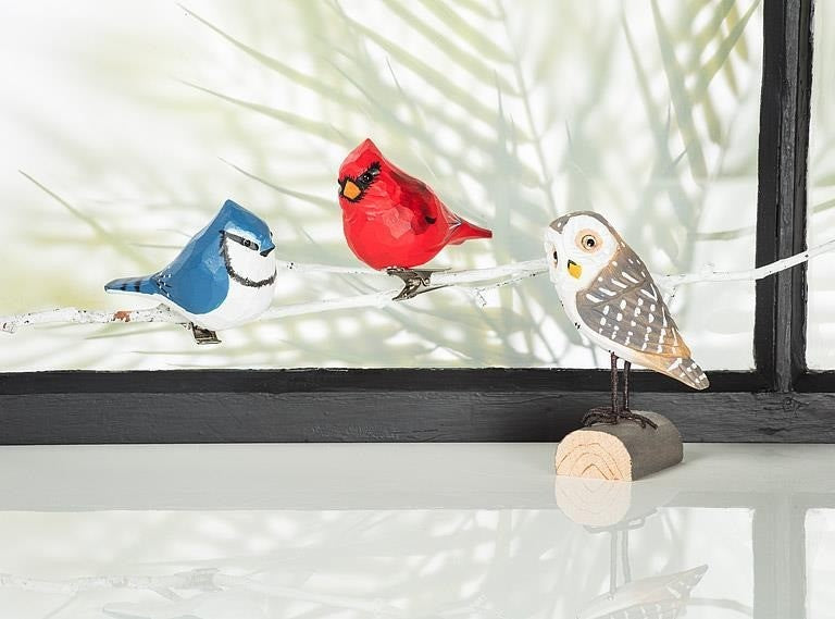 Perched thoughtfully on a carved log, this wooden owl brings woodland wisdom to your decor. Its earthy tones and textured wings create a cozy cabin-in-the-woods feel.