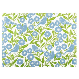 Lush foliage and perched birds give this placemat a peaceful, hand-drawn quality. Made from durable plastic, it’s both practical and artful.