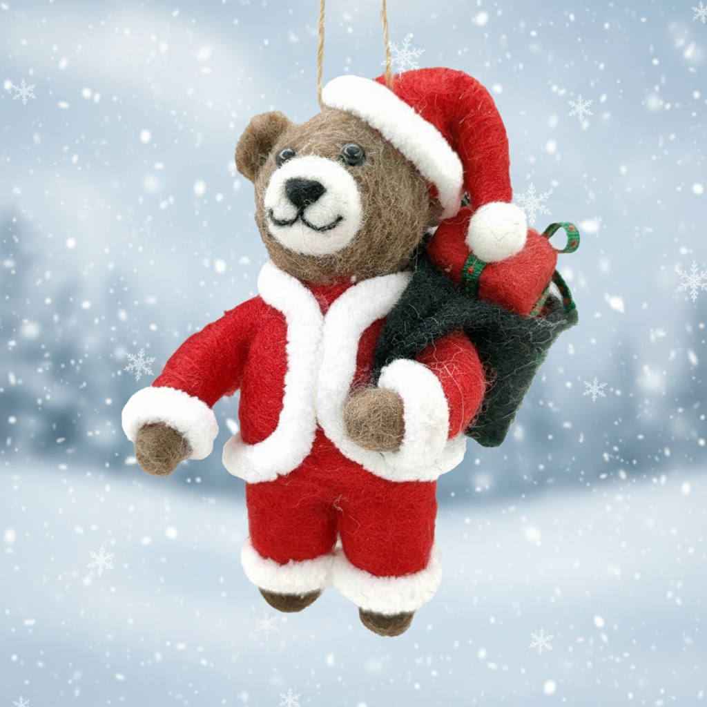 Cozy, festive, and full of charm—this sweet bear dressed as Santa brings heartwarming cheer to your holiday tree.