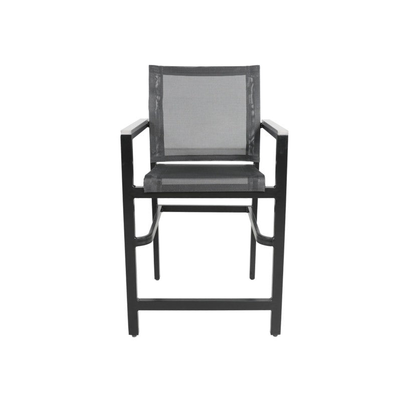 - Sherwin Williams Black Aluminum frame, Black Batyline Sling® seat and back, Sol Teak® Mica Armrests