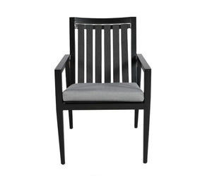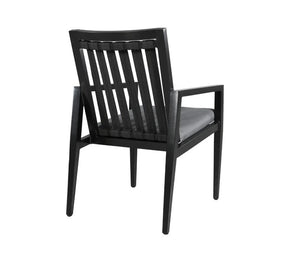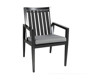 Host and enjoy outdoor dining comfortably with the Studio Outdoor Dining Arm Chair. Combining durable cast aluminum with Sol Rope the Studio Collection pairs distinctive angular back legs with a comfortable pitched back.