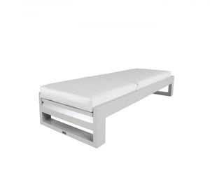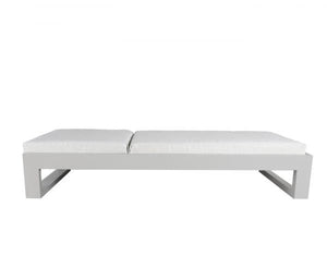 Constructed from durable cast aluminum in grey or patina, this chair features bold chamfered edges, sol teak detailing, and includes water, mold and stain resistant Sunbrella fabric cushions in your choice of colour. Bold and architectural, this collection is perfectly suited for larger outdoor spaces.