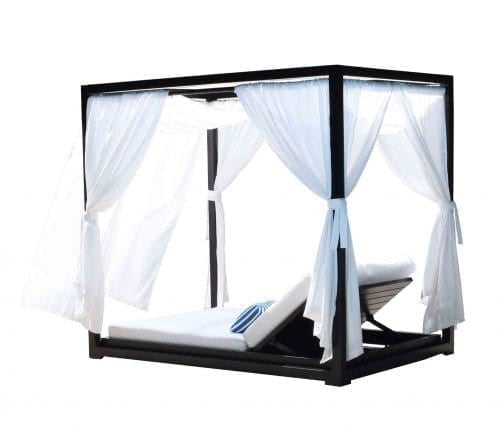 Available in Black, White, or Dove powder-coated aluminum, The Lakeview Outdoor Cabana Daybed includes custom Canadian made outdoor cushions in your choice of a wide variety of Sunbrella fabrics. Includes toss cushions to complete the ensemble.