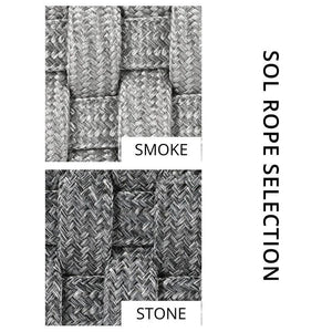 Constructed from a durable cast aluminum frame in white or black, this chair features cozy basketweave SOL rope in your choice of Smoke or Stone. Pair it with the corresponding pieces from the Stellan line, for a full outdoor living set.