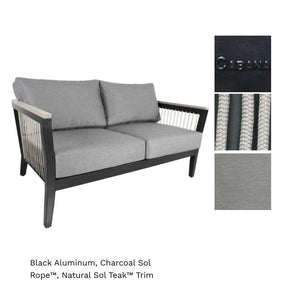 Create a relaxed and contemporary outdoor living space with the Cove Outdoor Loveseat. Combining a long lasting aluminum with custom Canadian made deep seating cushions and unique low maintenance Sol Rope and Sol Teak details, the Cove Collection offers a unique, casual collection of outdoor furniture.