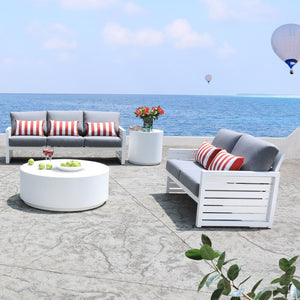 Unwind, relax and make the most of your patio, backyard or balcony with the Gramercy Outdoor Loveseat. Featuring a clean and streamline design, the Gramercy Outdoor Loveseat has a durable aluminum frame, and includes customizable deep seating cushions. Pair the Gramercy Outdoor Loveseat with the corresponding Gramercy Seating options, for a full outdoor conversation set.