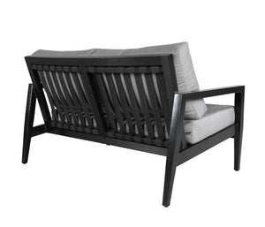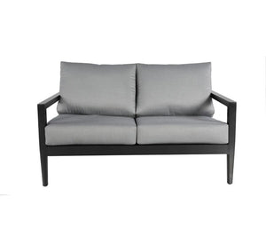 Create an outdoor oasis with the help of the Studio Collection. Combining distinctive angular back legs with a comfortable pitched back, the Studio Outdoor Loveseat seats up to 2 guests comfortably.