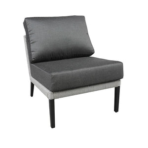 Combining durable powder coated cast aluminum with woven Sol Rope™, the Gambrel Outdoor Slipper Chair can be paired with corresponding modular pieces from the Gambrel line for a full outdoor sectional.