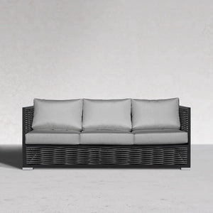 Material: Resin Wicker on an Aluminum Frame, Sunbrella® Fabric Cushions, Stainless Steel