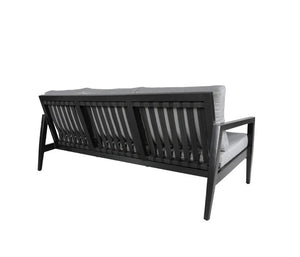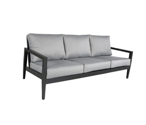 Crafted with distinctive angular back legs and a pitched back, the Studio Outdoor Sofa seats up to 3 comfortably and pairs beautifully with the corresponding pieces from the Studio line. The Studio Outdoor Sofa includes water, stain, and mold resistant Sunbrella® fabric cushions in your choice of colour.