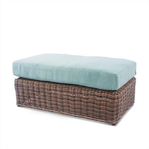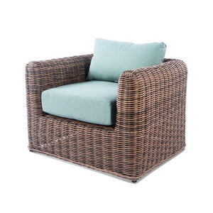 Material: Powder-coated steel and all-weather resin wicker frames, polyester cushion covers in Aqua.
