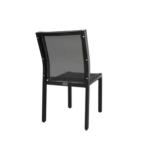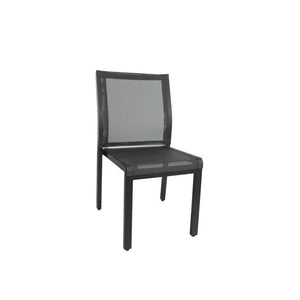 Featuring a durable aluminum frame, with a Batyline Sling® seat and back, the Skye Outdoor Side Chair is perfect for everyday use and entertaining. The Batyline Sling® is constructed from a PVC coated polyester that offers airy support, while being resistant to tearing, stains and fading.