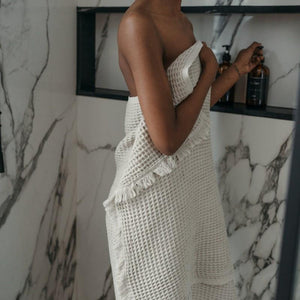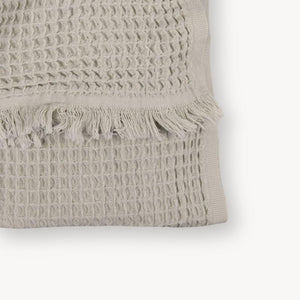 Blending comfort and sophistication seamlessly with its neutral tones and textured waffle weave, finished with a classic eyelash fringe.