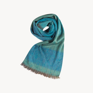 This scarf is hand-loomed, machine-woven, and then machine-brushed for added softness. This unique, artisanal scarf collection is made by a family of Indigenous artisans living in the volcanic mountains of Ecuador. The order of which the colours are woven vary from scarf to scarf, however the colours you see remain the same with each - making it a truly unique artisan gift.