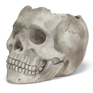 Add a delightfully spooky touch to your decor with this life-like Skull Planter. Crafted out of cement, this grey planter is sculpted with lots of rich texture and detail for a fun and frightful complement to the brightest of flowers or blooms.