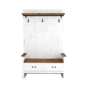 Inspired by the rustic, natural designs of Southern France, this bench features an antique white finish with a natural pine wood accents for a relaxed and organic look. It offers 2 drawers for extra storage.