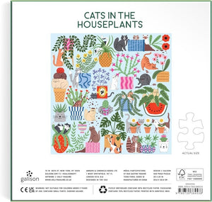 Enjoy a delightful journey into the world of feline companionship and lush greenery with Galison's charming 500-piece puzzle featuring artwork of all kinds of cats and houseplants.
