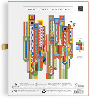 Celebrate the visionary artistry of Frank Lloyd Wright with the Saguaro Cactus & Forms 750 Piece Shaped Foil Puzzle from Galison. Inspired by one of Wright's most iconic desert-themed textile designs, this uniquely contoured puzzle offers an immersive and engaging challenge. Measuring 21.5 x 27, it features foil-stamped accents that highlight the striking geometric lines and color contrasts of this Southwest-inspired masterpiece.