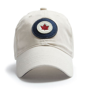 The roundel we feature reflects the original artwork created for the RCAF Roundel and two layers of vintage style appliqué complete the package. deHavilland Tiger Moths, Chipmunks and later NAA Harvards military training aircraft were painted the iconic yellow and also featured the silver-bordered Canadian flags we’ve added to the rear port side of the caps. Made of 100% brushed cotton.
