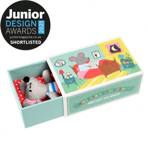 This Plush Mouse In A Little House from Rex London with its striped shirt and red polka dot blanket is an adorable addition to your little one's stuffed animal collection. It comes in a gift box wonderfully illustrated with the cozy details of its home.