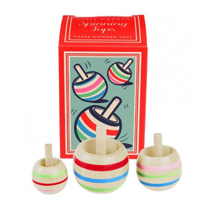 Ready, set, spin! Enjoy a traditional pastime with this set of mini wooden spinning tops from Rex London. This set includes three wooden spinning tops in different sizes, each featuring colourful painted stripes.