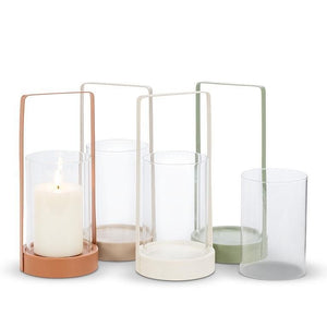 Elevate your candlelight with the help of these stylish Small Cylinder Lanterns. Available in four assorted on-trend pastel colours, the metal base of these lanterns is accented with a glass cylinder for an elegantly simple way to carry candlelight and complement your outdoor decor.