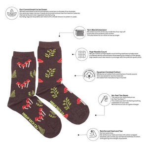 Add a touch of nature to your wardrobe with these ethically made socks, featuring an elegant mix of mushrooms and forest greenery - subtly mismatched for a timeless, earthy appeal.