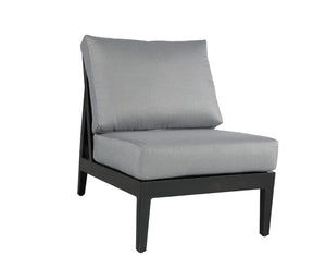 Featuring distinctive angular legs with a comfortable pitched back, the Studio Outdoor Slipper Chair can be paired with the modular pieces from the Studio line for a full outdoor sectional. Includes your choice of mold, milew, and fade resistant Sunbrella fabric cushions.
