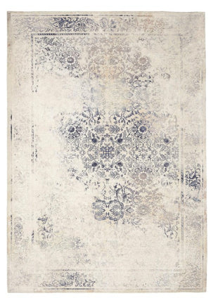 Sparx Distressed Navy Blue Beige Grey Washable Transitional Rug – Power-loomed in Turkey from a 45% cotton and 55% polyester blend, this machine-washable rug features a 0.20" pile and a stylish distressed design in navy, beige, and grey.