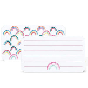 Crafted out of paper, these note cards feature guidelines and a pastel rainbow on one side, matched with an assortment of rainbows on the other to complement anything from "thank you" notes to congratulations, and more.
