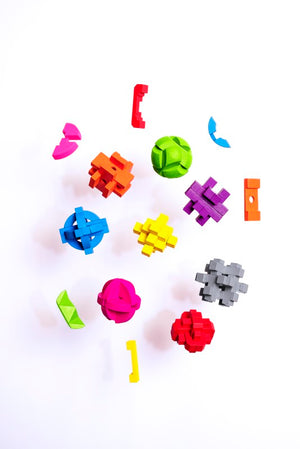 Brighten up your brain training with these highly addictive, highly collectible wooden puzzles. Will you be able to separate the wooden pieces and then rebuild the puzzle?