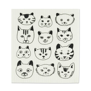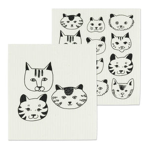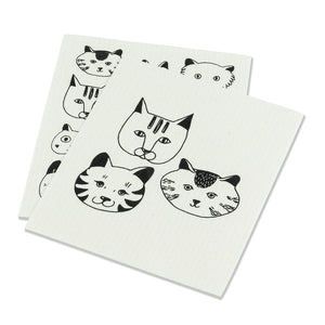 Keep kitchens and dishes clean with the help of the Cat Faces Swedish Dishcloth, Set of 2.
