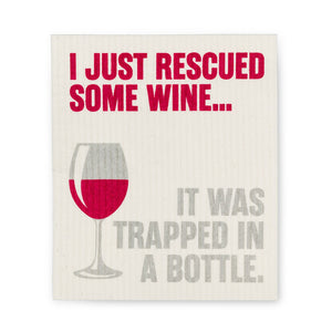 Keep kitchens and dishes clean with the help of the Rescued Some Wine Swedish Dishcloth, Set of 2.