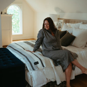 This throw is hand-loomed, machine-woven, and then machine-brushed for added softness.
