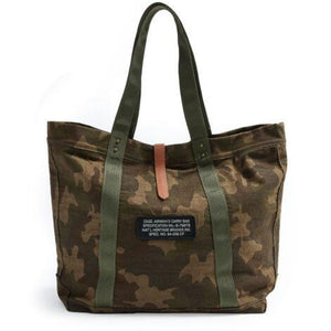Crafted from 100% cotton canvas in a striking dark camouflage finish, it offers spacious organization with one secure zip pocket and two open compartments inside. An adjustable leather strap adds a touch of elegance and ensures comfortable carry, whether slung over the shoulder or held in hand.