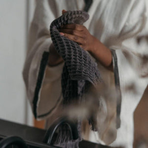 Blending comfort and sophistication seamlessly with its neutral tones and textured waffle weave, finished with a classic eyelash fringe.