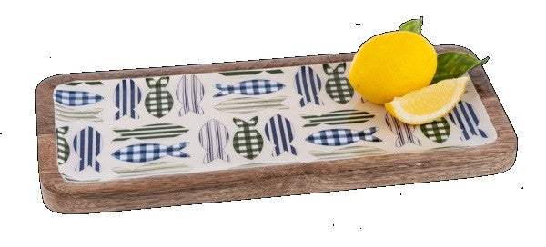 Charming rectangular serving tray featuring a fish design. Perfect for serving snacks, appetizers, or drinks while adding a touch of coastal style to your table.